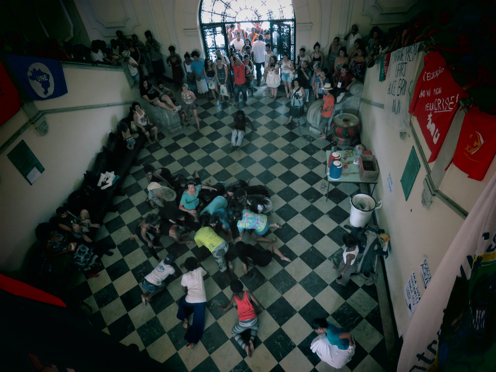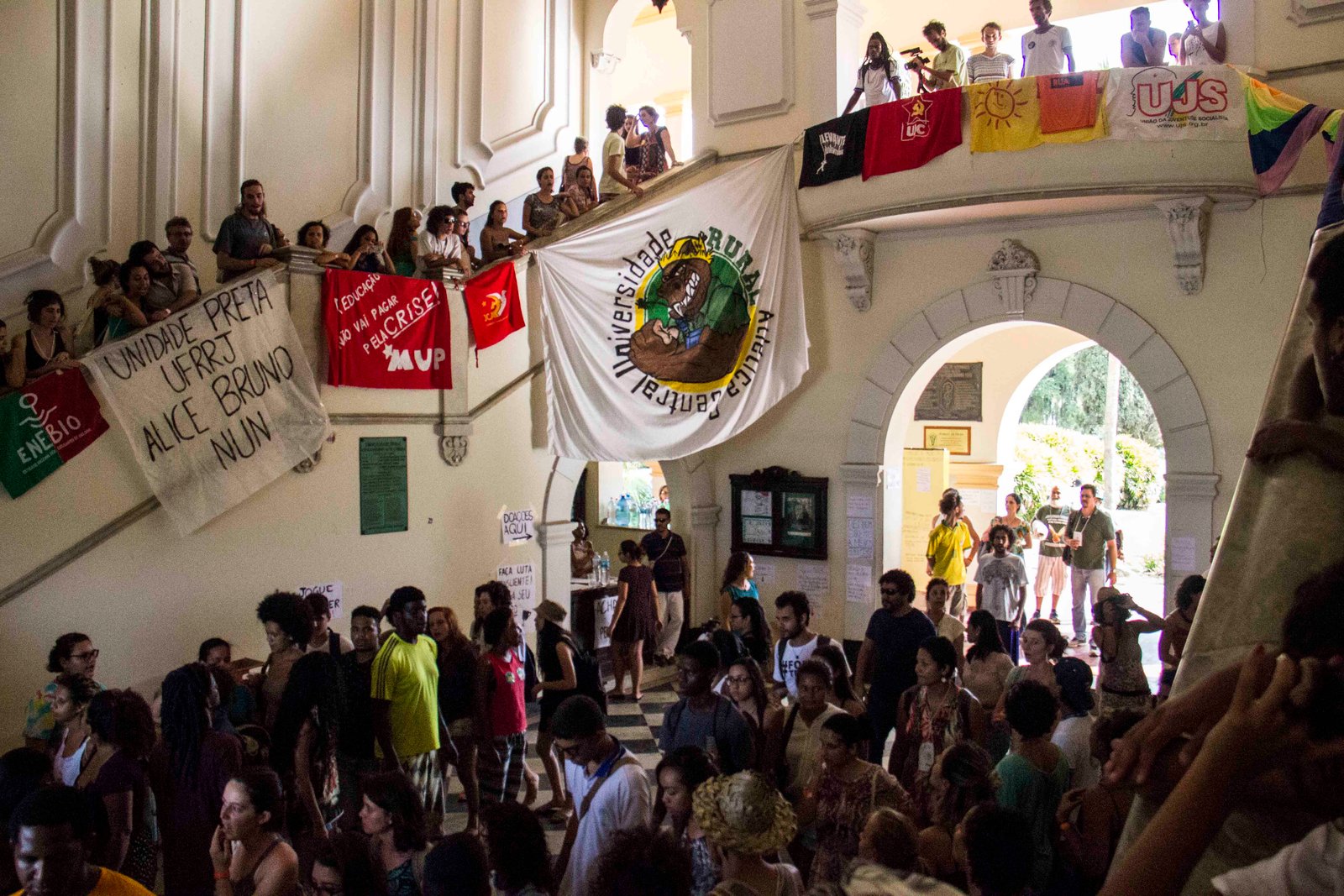 Anúncios de resistência e luta por parte de movimentos que afirmam que retrocessos na Educação não serão aceitos. Essa foi a tônica que permeou o II Seminário Nacional de Educação em Agroecologia (SNEA), que sintomaticamente teve por tema central “Resistências e Lutas por Democracia”, e sua mesa de encerramento não poderia ser diferente. Nada mais coerente do que encerrar o evento, que busca dialogar com as questões atuais de nossa sociedade, junto aos focos de luta por justiça e democracia e às/aos sujeitos que têm protagonizado a resistência contra às arbitrariedades e ataques que têm sido perpetrados de forma cada vez mais intensa aos direitos sociais construídos e conquistados nas últimas décadas. Com a intenção de manifestar o reconhecimento e o apoio à iniciativa de ocupação dos estudantes da UFRRJ à reitoria, que por uma feliz coincidência iniciou durante o evento e se soma aos processos de ocupações que já envolvem mais de 90 Universidades Brasil afora, a mesa de encerramento emblematicamente ocorre no Auditório Gustavo Dutra, o Gustavão, localizado no Pavilhão Um, Pavilhão Central da UFRRJ onde ocorre o movimento de ocupação.
