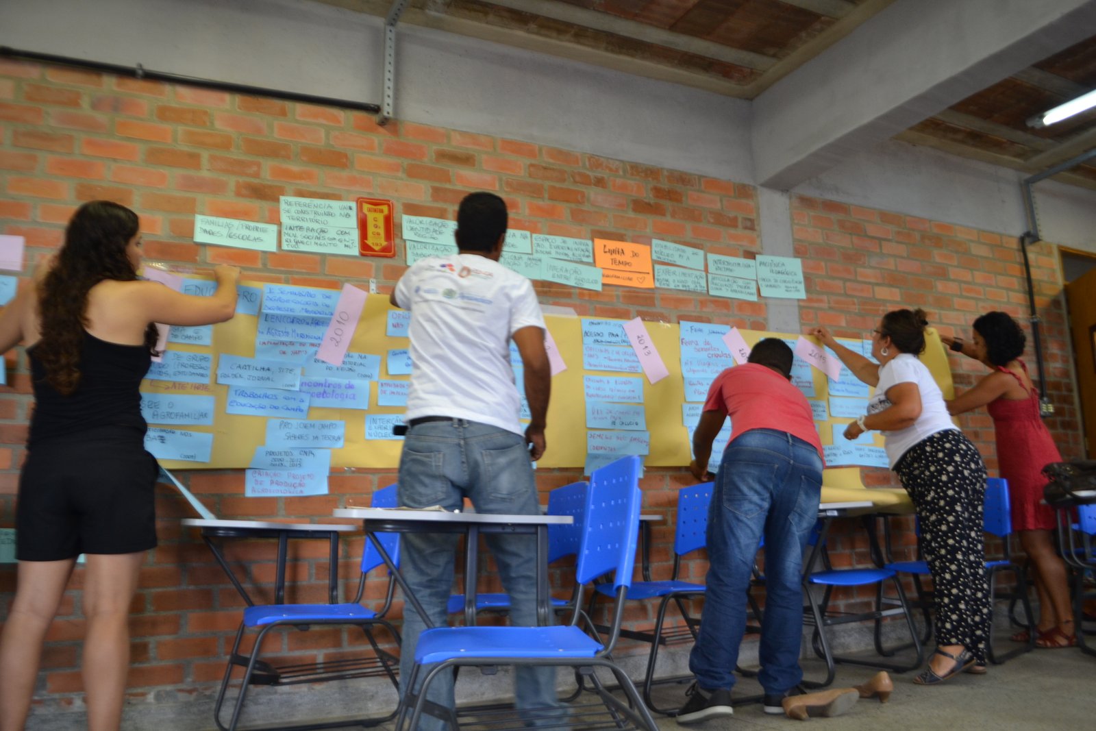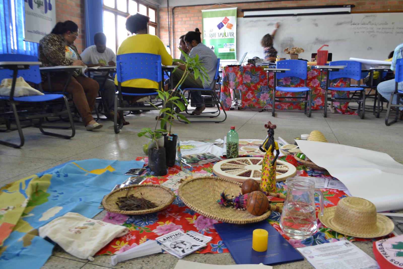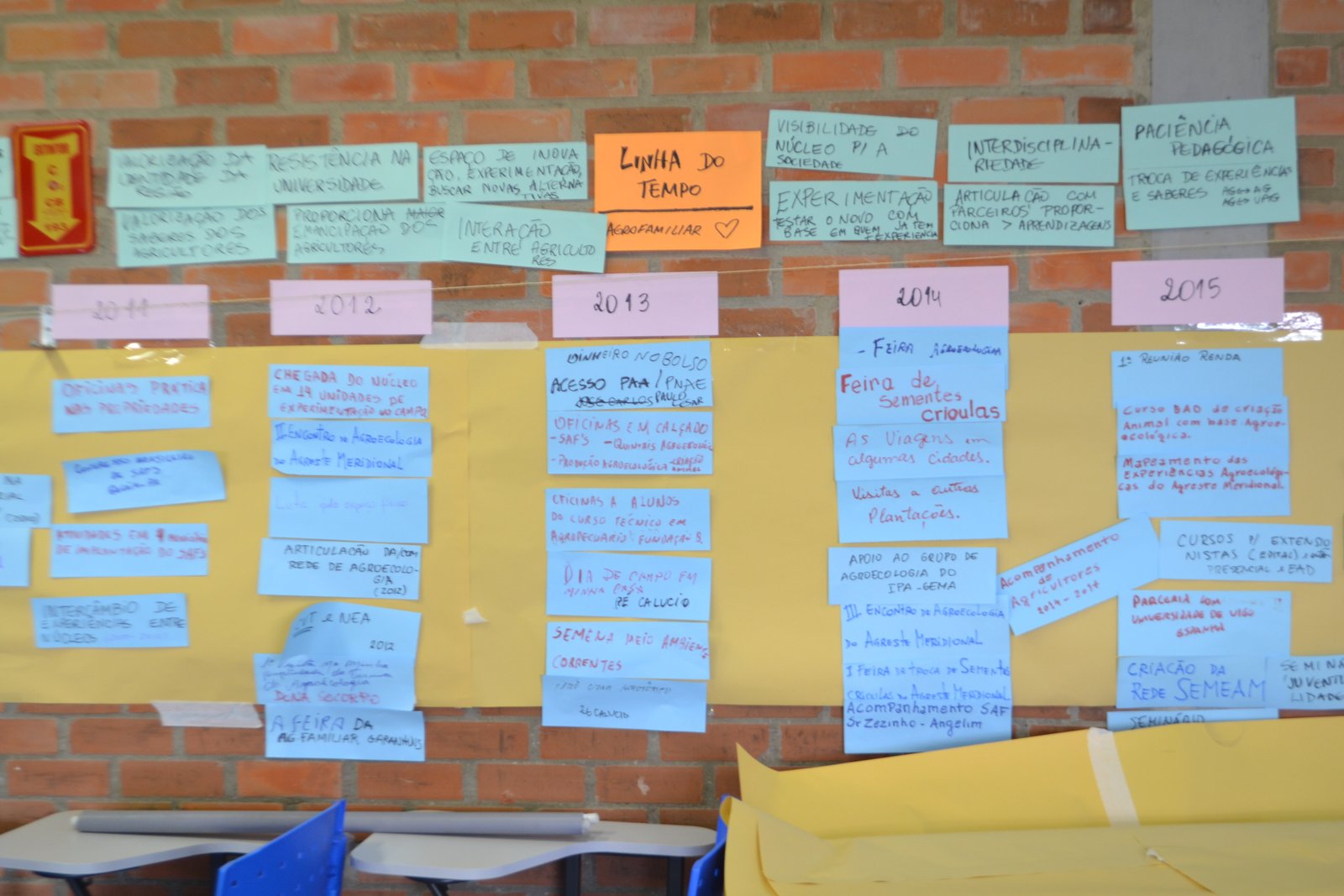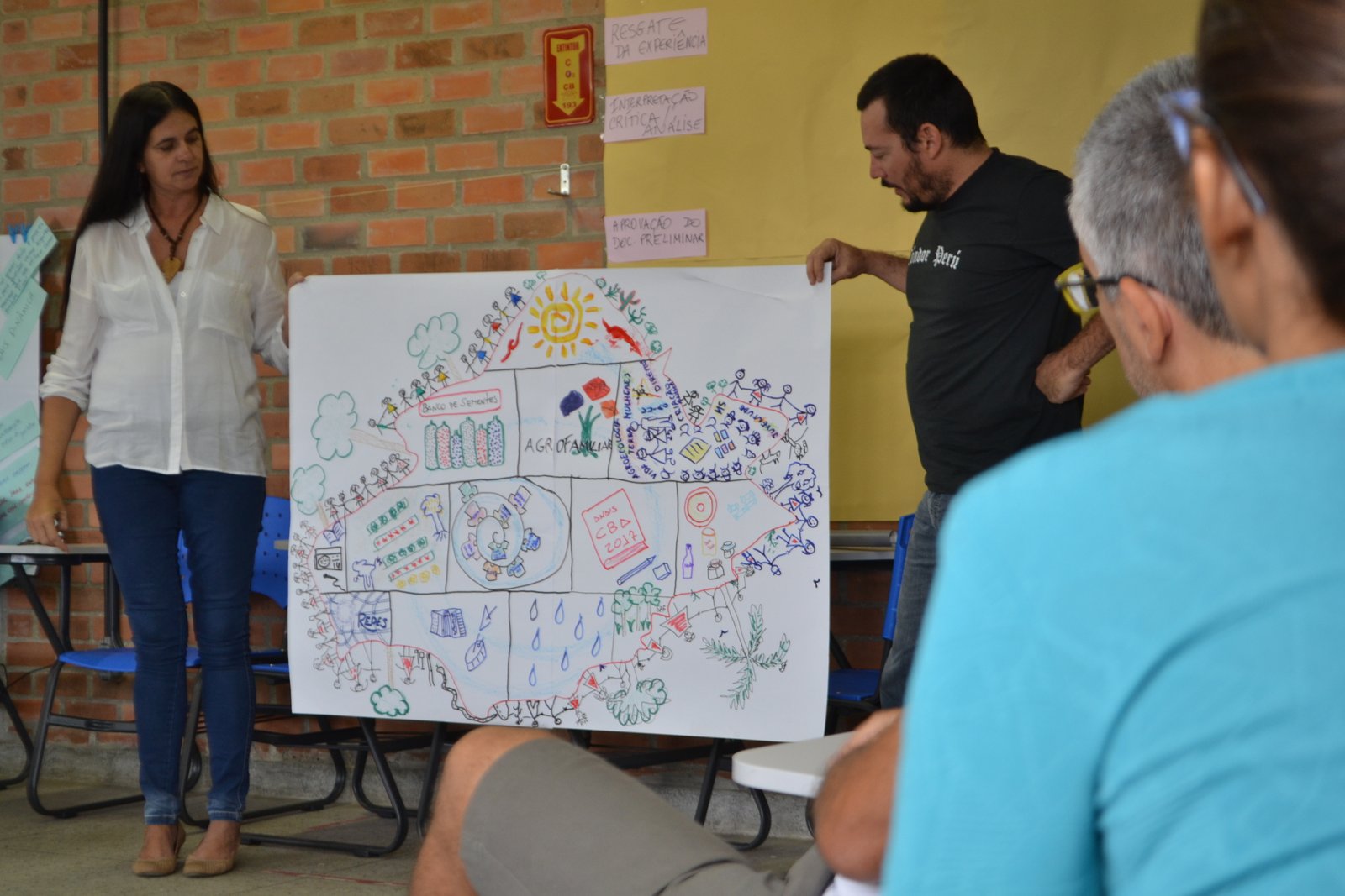 discutidos os diversos sentidos de se sistematizar experiências. Resgatou-se seu conceito e metodologias, rememorou-se coletivamente os 8 anos de atuação do Agrofamiliar, sendo que a oficina foi permeada de momentos de integração a partir de místicas e dinâmicas destinadas a superar o trabalho focado meramente no aspecto cognitivo/racional que costuma predominar nos meios acadêmicos tradicionais. Por meio disso buscou-se trabalhar a apreensão e a inteligência corporal e emocional em conexão com as pessoas, entendendo-se que a aprendizagem em sua plenitude se dá coletivamente.